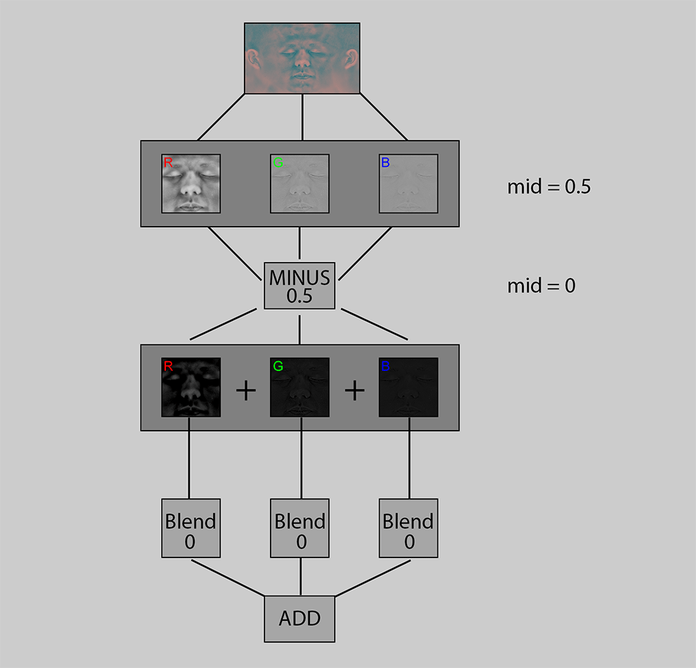 Because the mid value is now 0, and the Zbrush displacement already has a mid value of 0, all you have to do is blend it in to integrate Zbrush displacement.